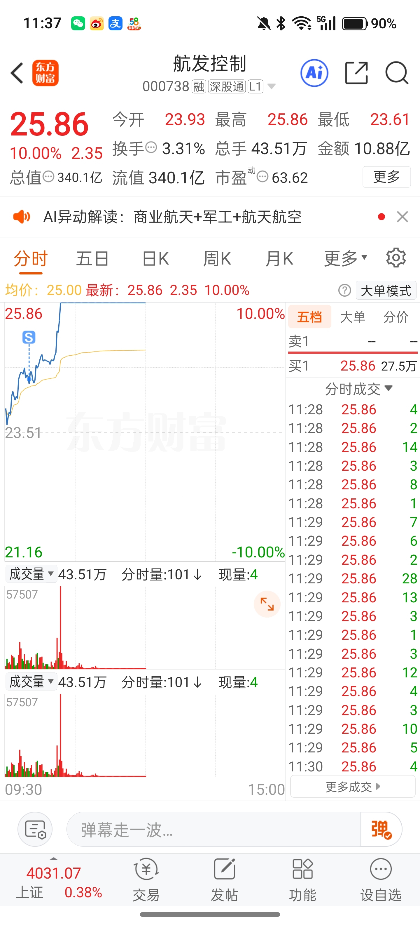 $航发控制(SZ000738)$ 跌的时候我扛了四天,涨的时候我拿不住走了