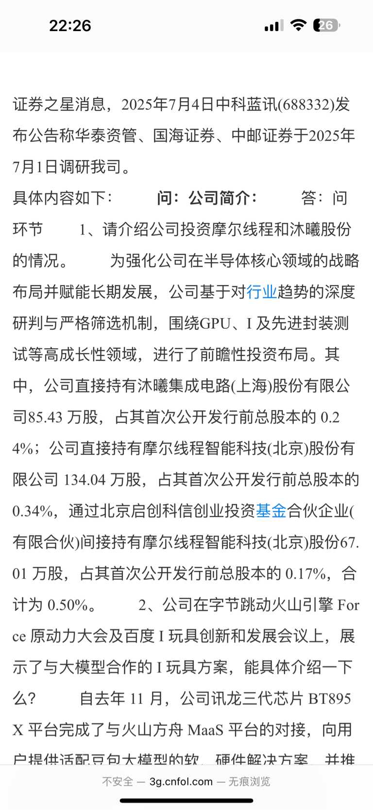 $国海证券(SZ000750)$ 豆包就是引用了股吧评论,投资是中科蓝讯的,之前国海证券去调研问了摩尔线程的事,也不知道谁造谣