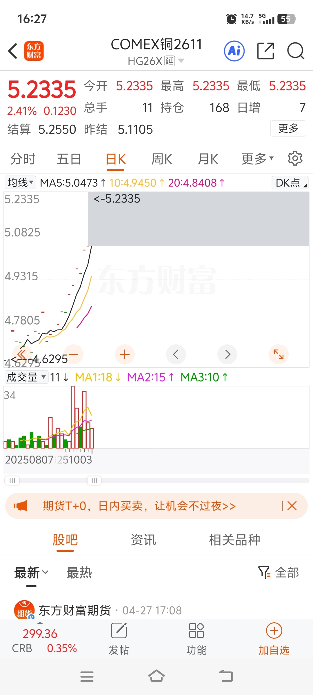 这铜期货涨的,
