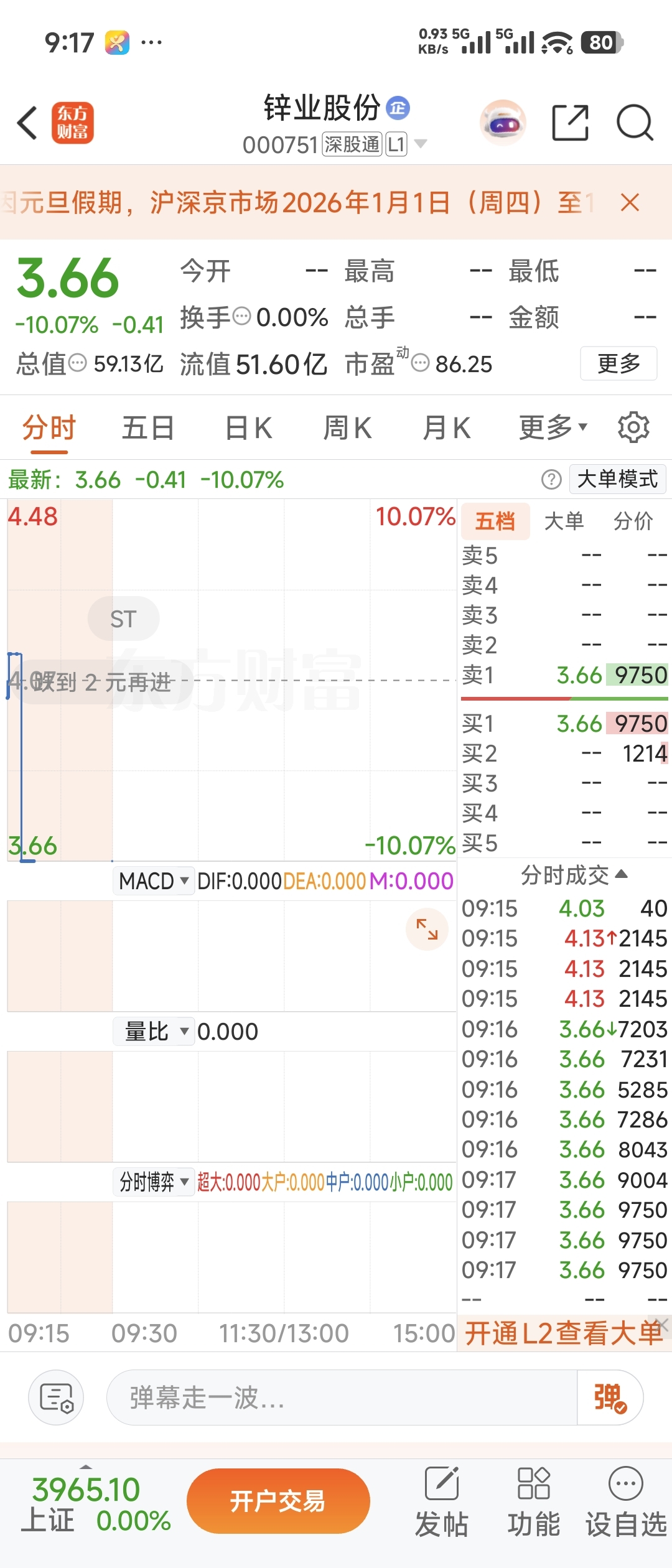 $锌业股份(SZ000751)$ 长期都这样开盘,是什么情况?
