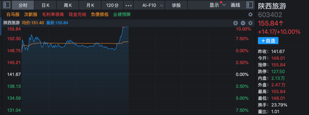 旅游股早间逆市高开高走,板块指数盘中大涨逾2%,创近4个月来新高。众信旅游开盘一字涨停,连续第2日封板,陕西旅游临近午间收盘最后7分钟直线涨停,西安旅游、长白山、云南旅游等也均在临近午间收盘前几分钟出现直线拉升的走势。