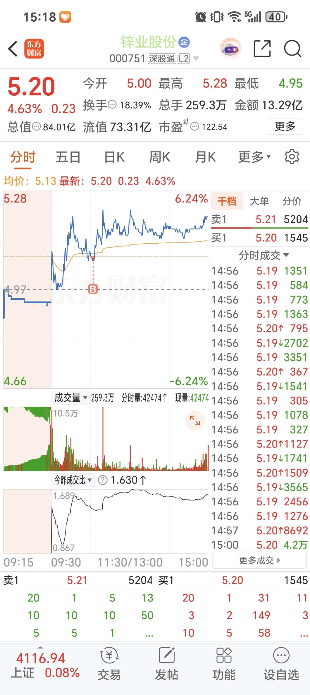 $锌业股份(SZ000751)$ 涨停后连续四天震荡前行,我觉得远没结束