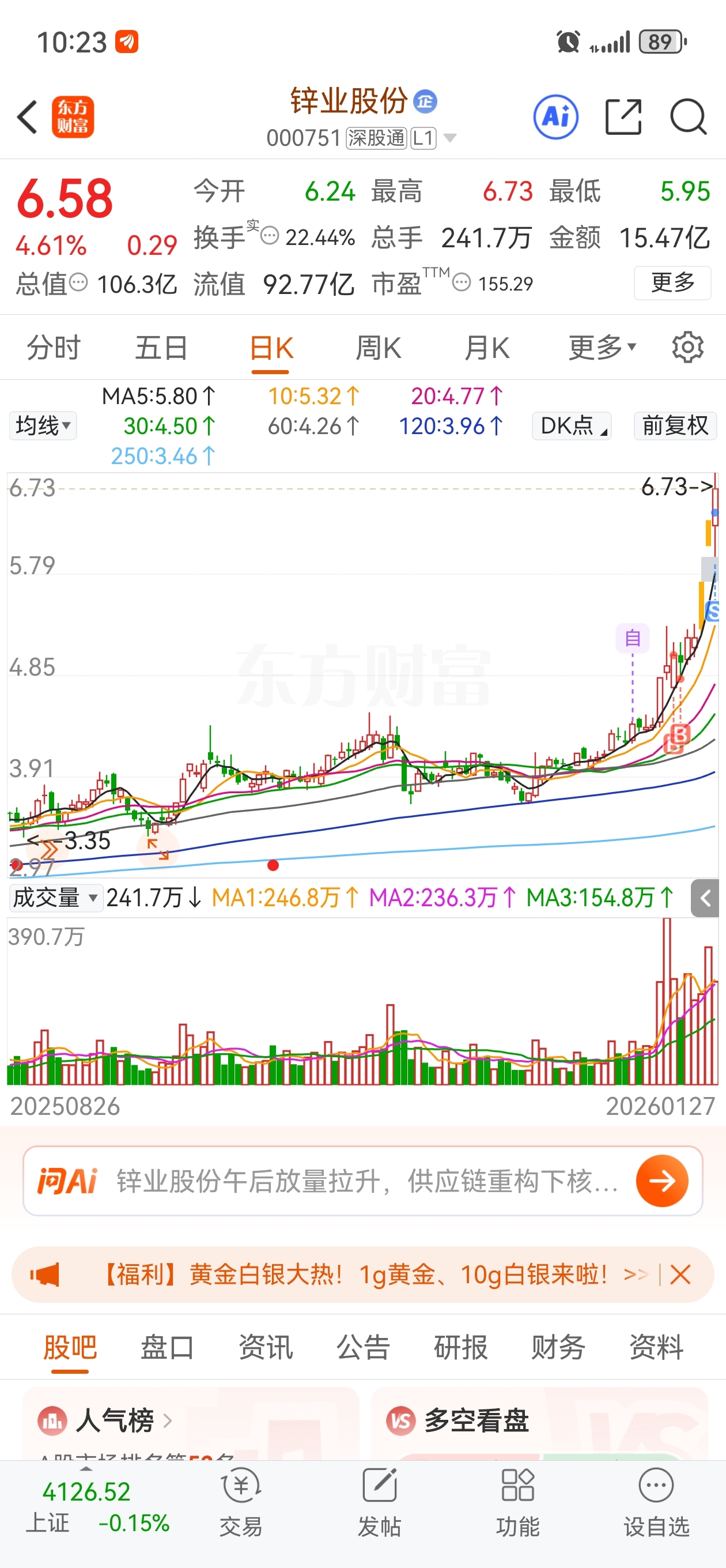 $锌业股份(SZ000751)$ 666卖了果然一直拉