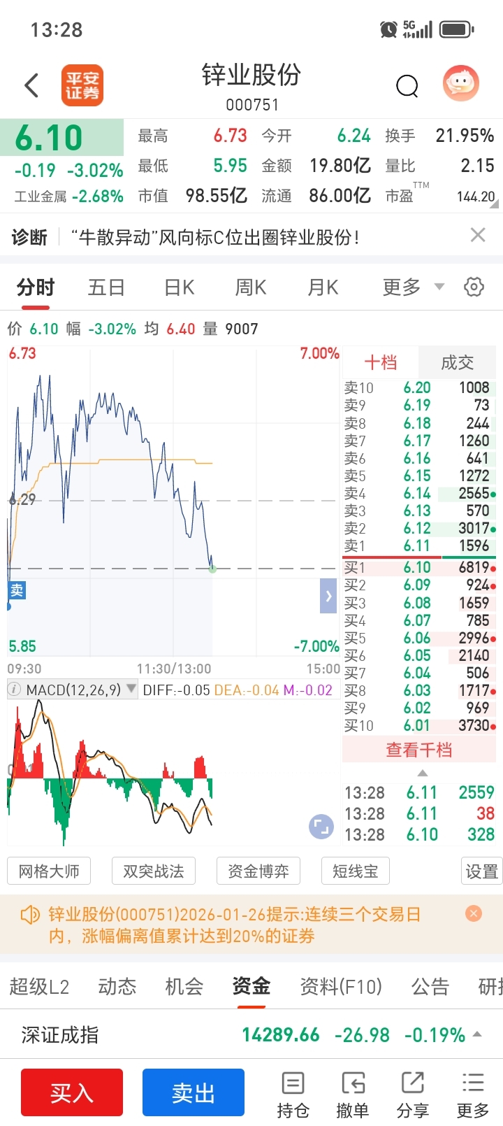 $锌业股份(SZ000751)$ 昨天打板进的,看白银掉了10个点,吓跑了,我是一个大啥笔
