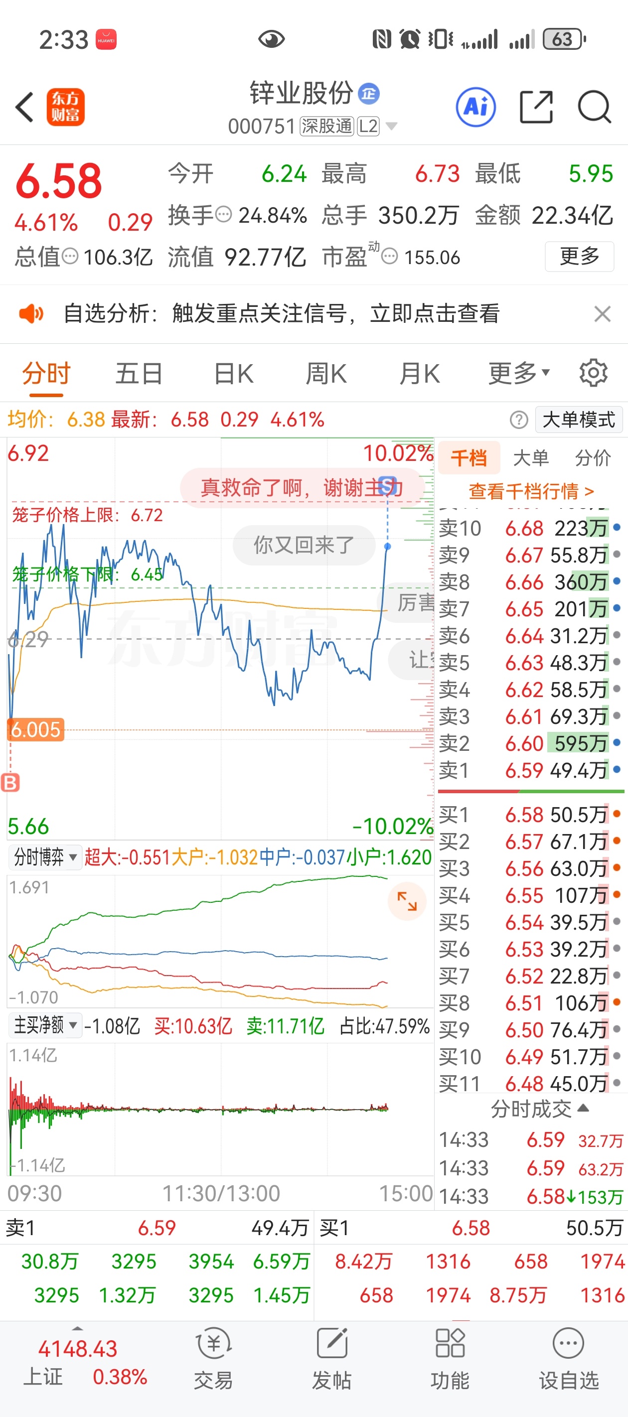 $锌业股份(SZ000751)$ 昨天打板进 成本做到6快了