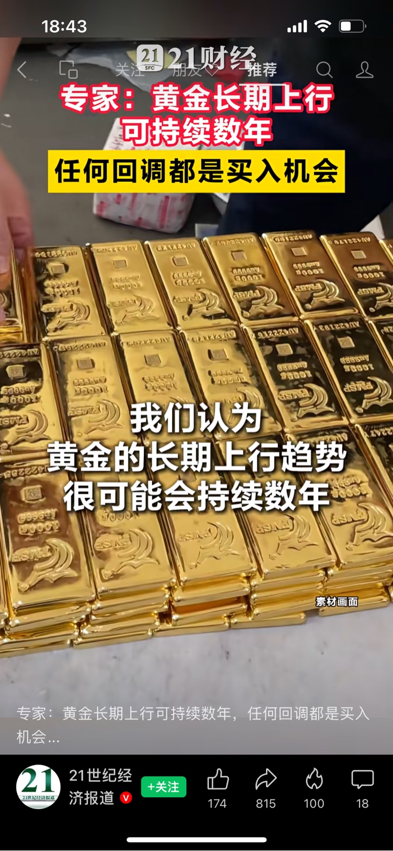 $锌业股份(SZ000751)$ 明天机会不多,不一定给空方补仓的机会,可能会一路绝尘,专家认为黄金会持续数年走高!
