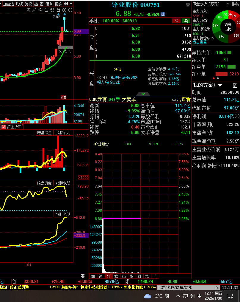 0130星期五 不会看主力资金动向就吃大亏的 锌业股份