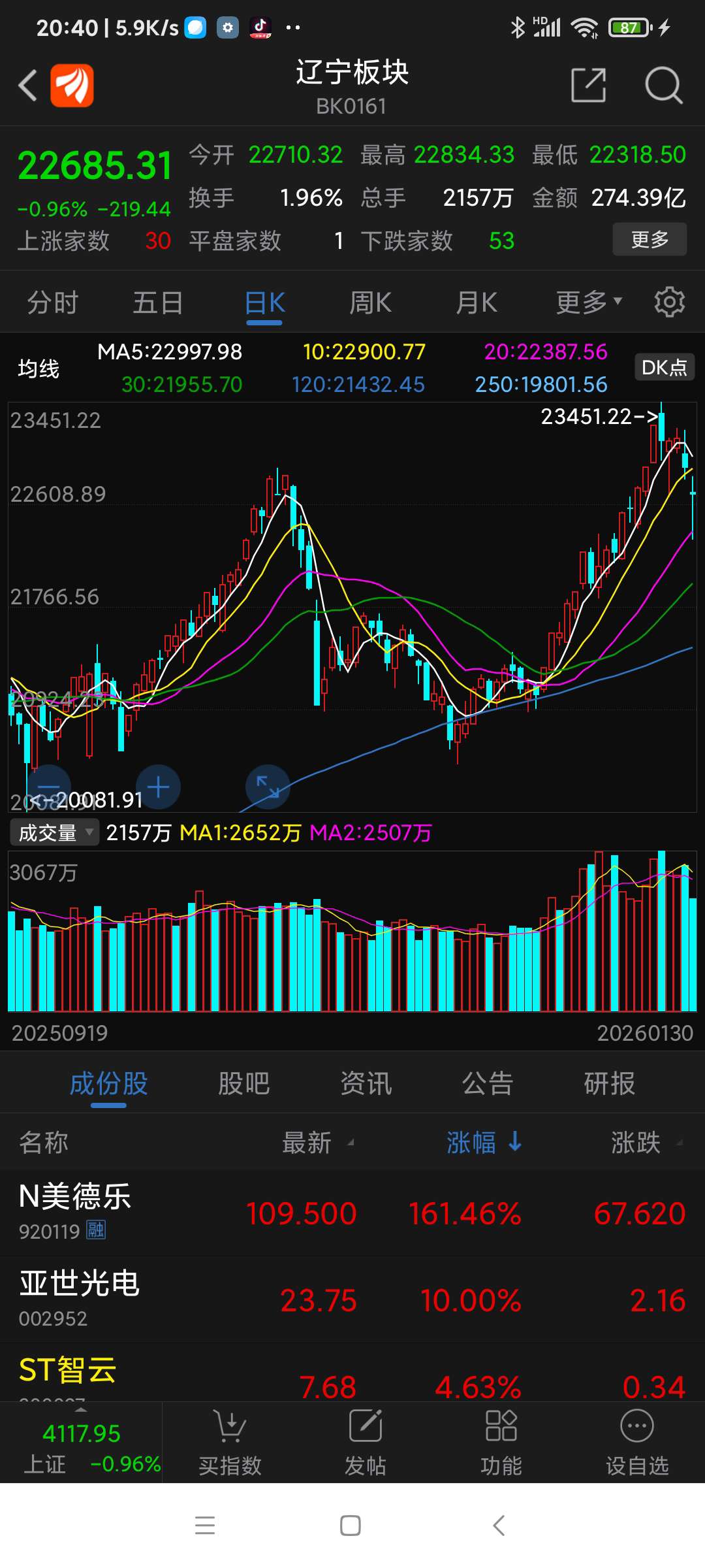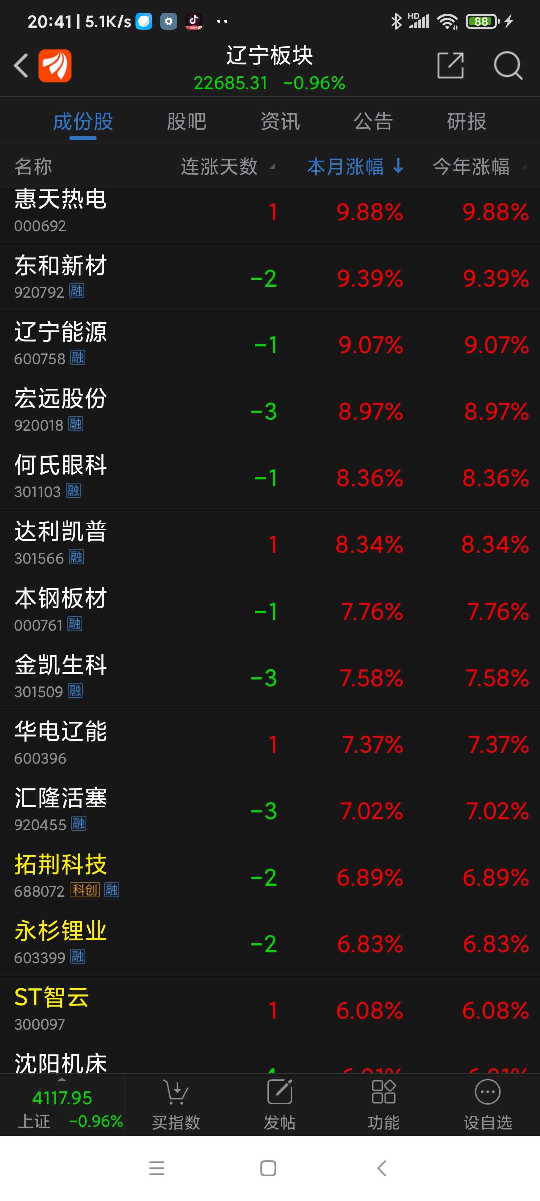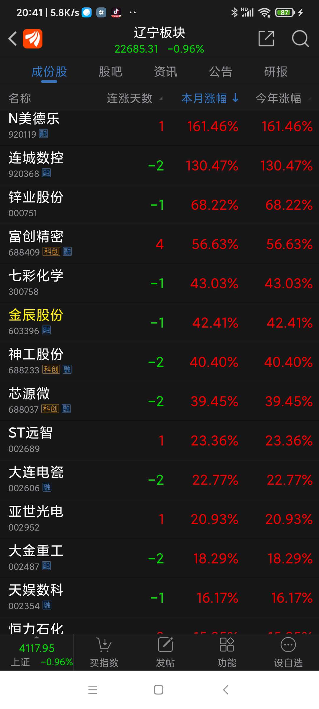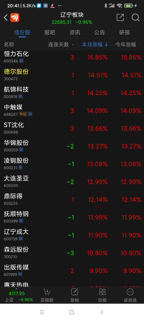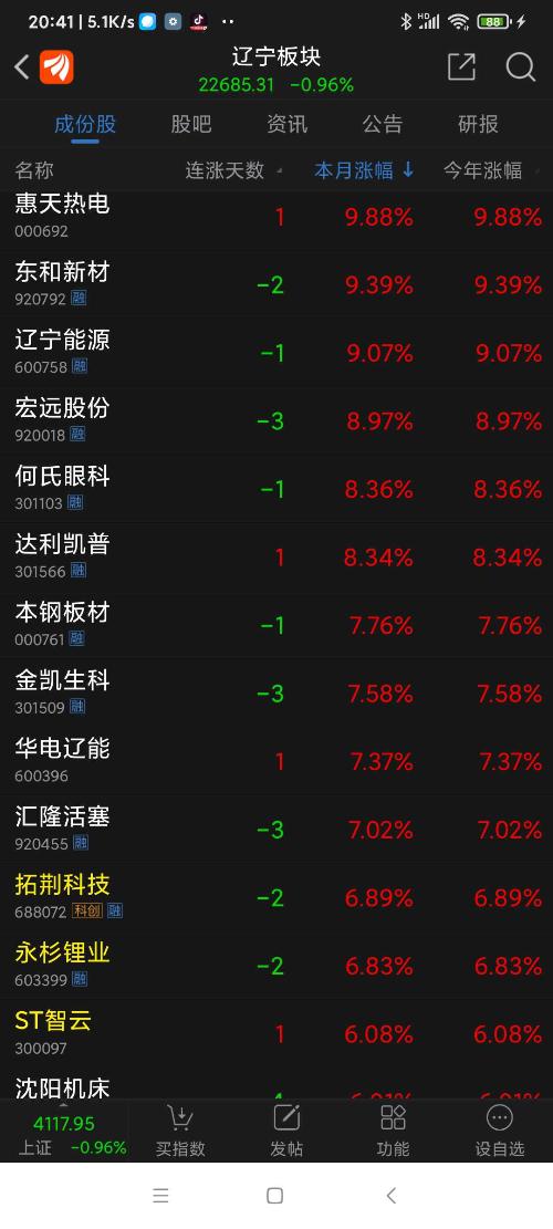 辽宁板块26年元月涨幅7.81%,锌业股份名列辽宁板块(共有84个股票)涨幅第一