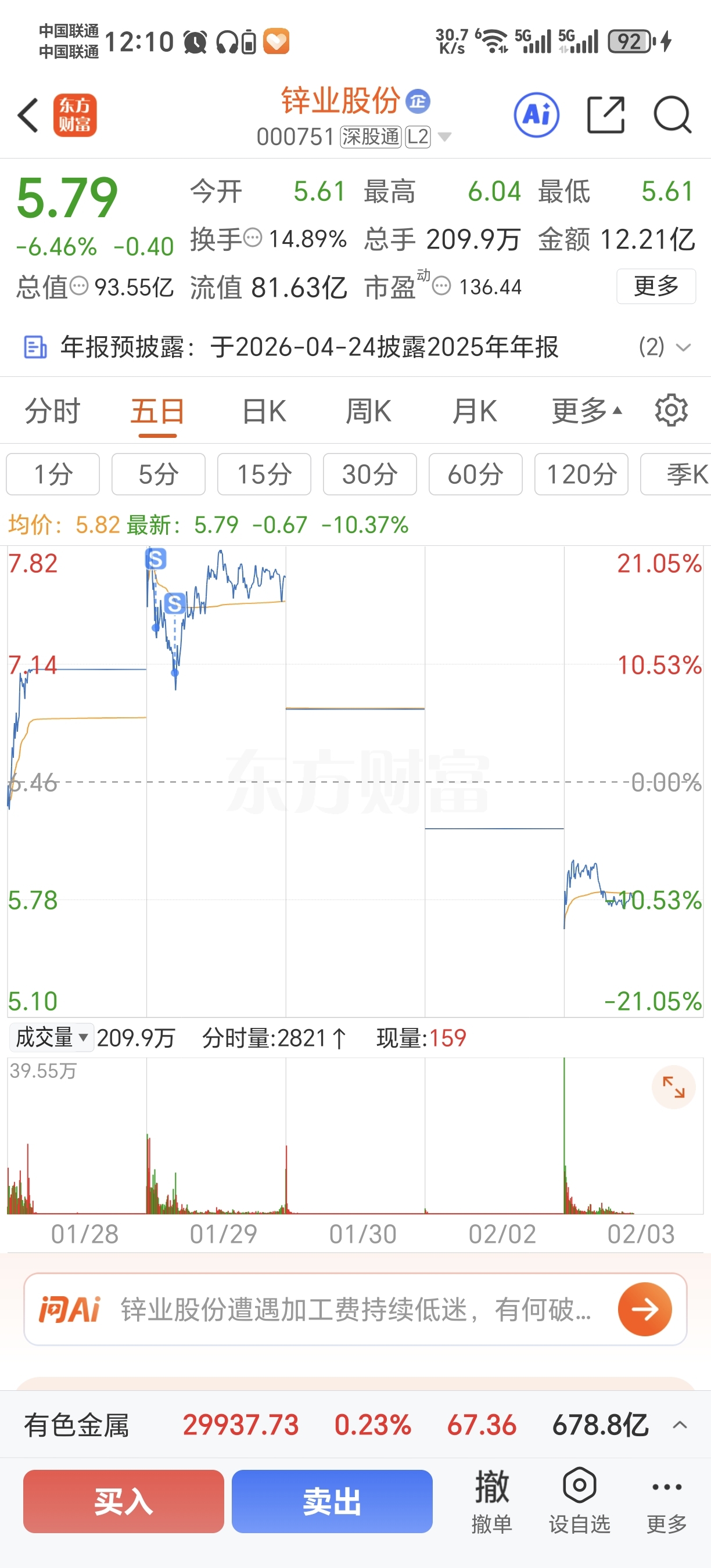 $锌业股份(SZ000751)$ 只有100股底仓 看着两三个跌停是真舒服#炒股日记# #强势机会#