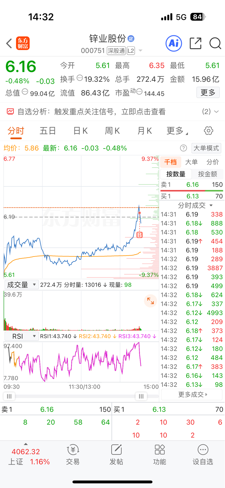 $锌业股份(SZ000751)$ 一手之力买崩你