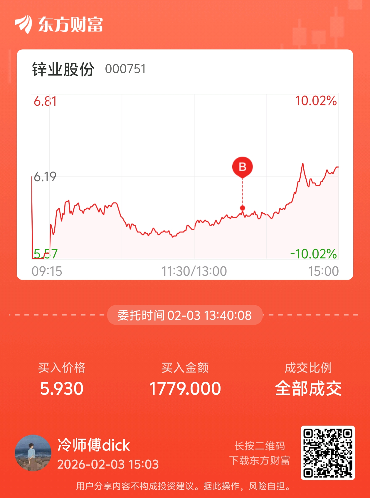 温馨提示: 1.根据《证券法》规定,禁止编造、传播虚假信息或者误导性信息,扰乱证券市场;2.用户在本社区发表的所有资料、言论等仅代表个人观点,与本网站立场无关,不对您构成任何投资建议。用户应基于自己的独立判断,自行决定证券投资并承担相应风险。《东方财富社区管理规定》