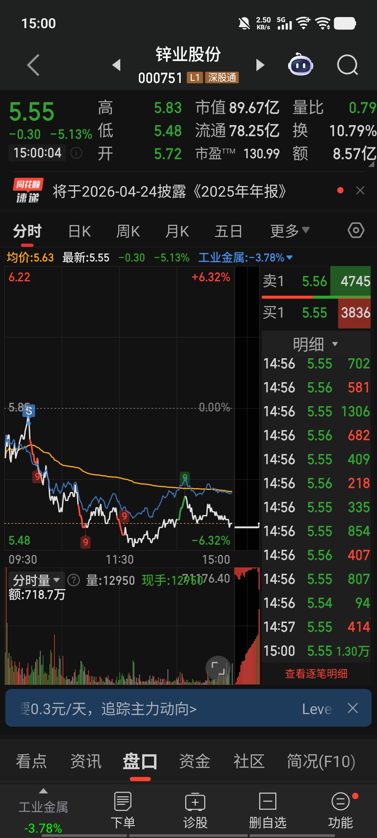 $锌业股份(SZ000751)$ 赚了五十块跑了