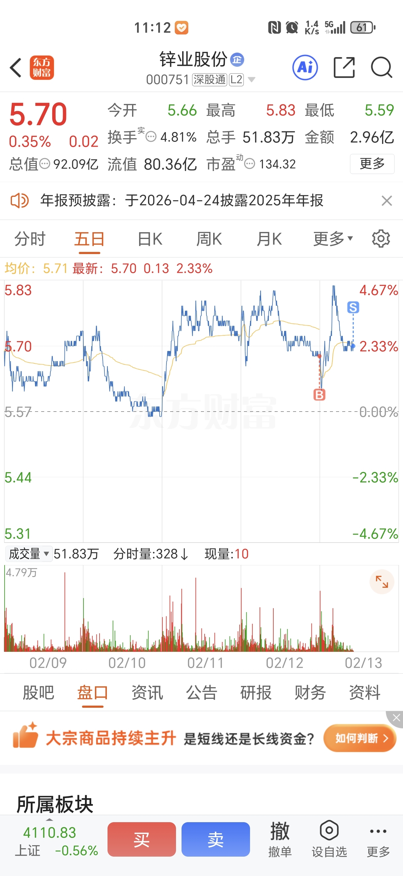 我是韭菜,5.8不走,5.7全走了,成本5.68