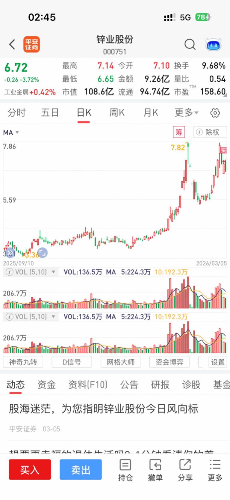 $锌业股份(SZ000751)$ 实盘日记之我被套了 好消息是小仓位 再好消息是极大可能红开 涨停