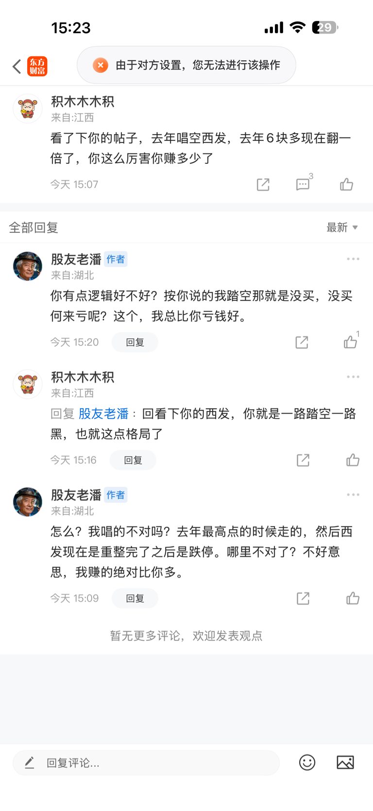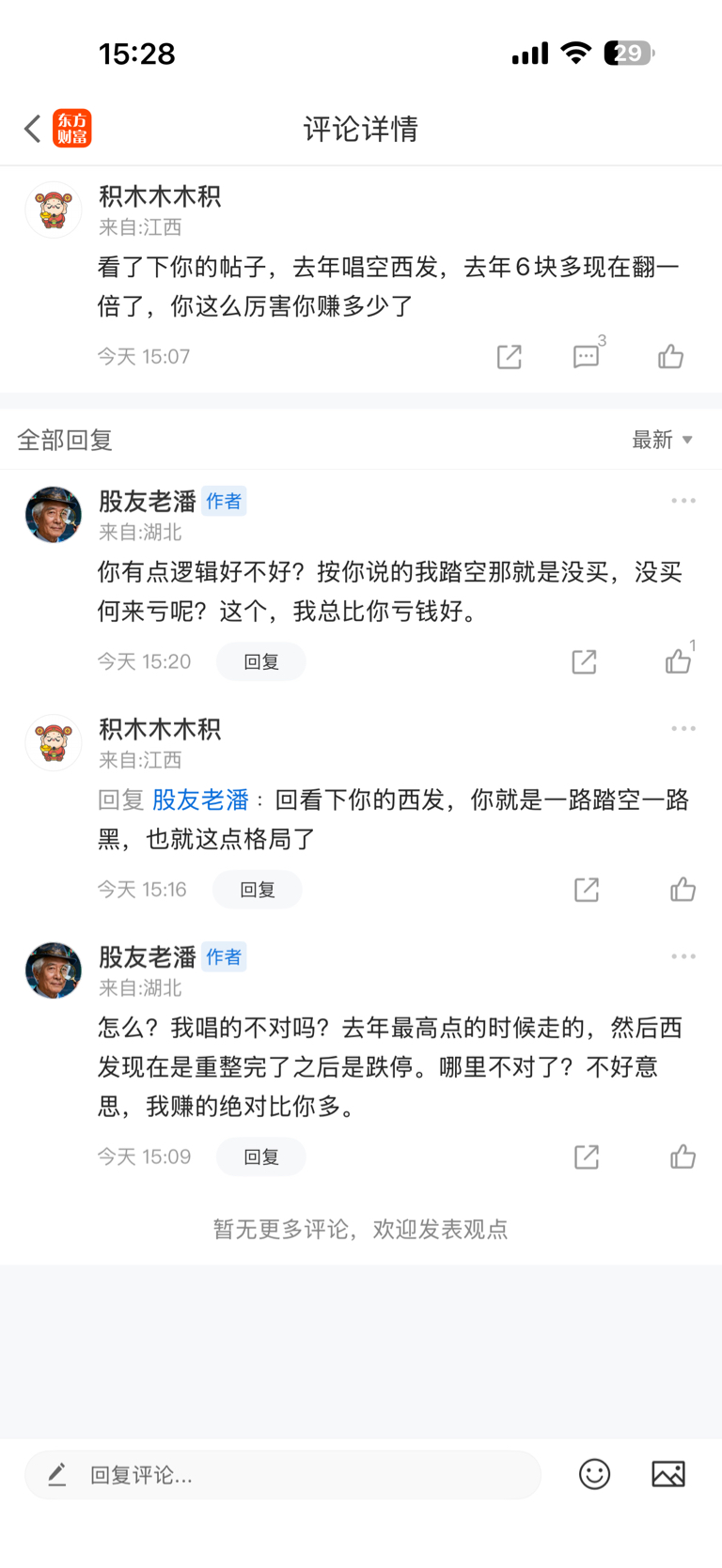 $ST西发(SZ000752)$ 股友老潘去年11月6块唱空西发,西发一路上涨,踏空了就来黑,就这格局。
