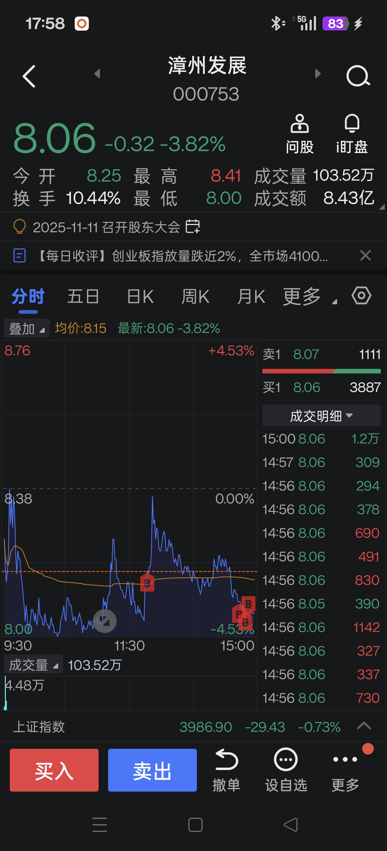 $漳州发展(SZ000753)$ 下午在看看吧,如果最高还是只能冲击7个点,我就下车了,剩下的兄弟发财