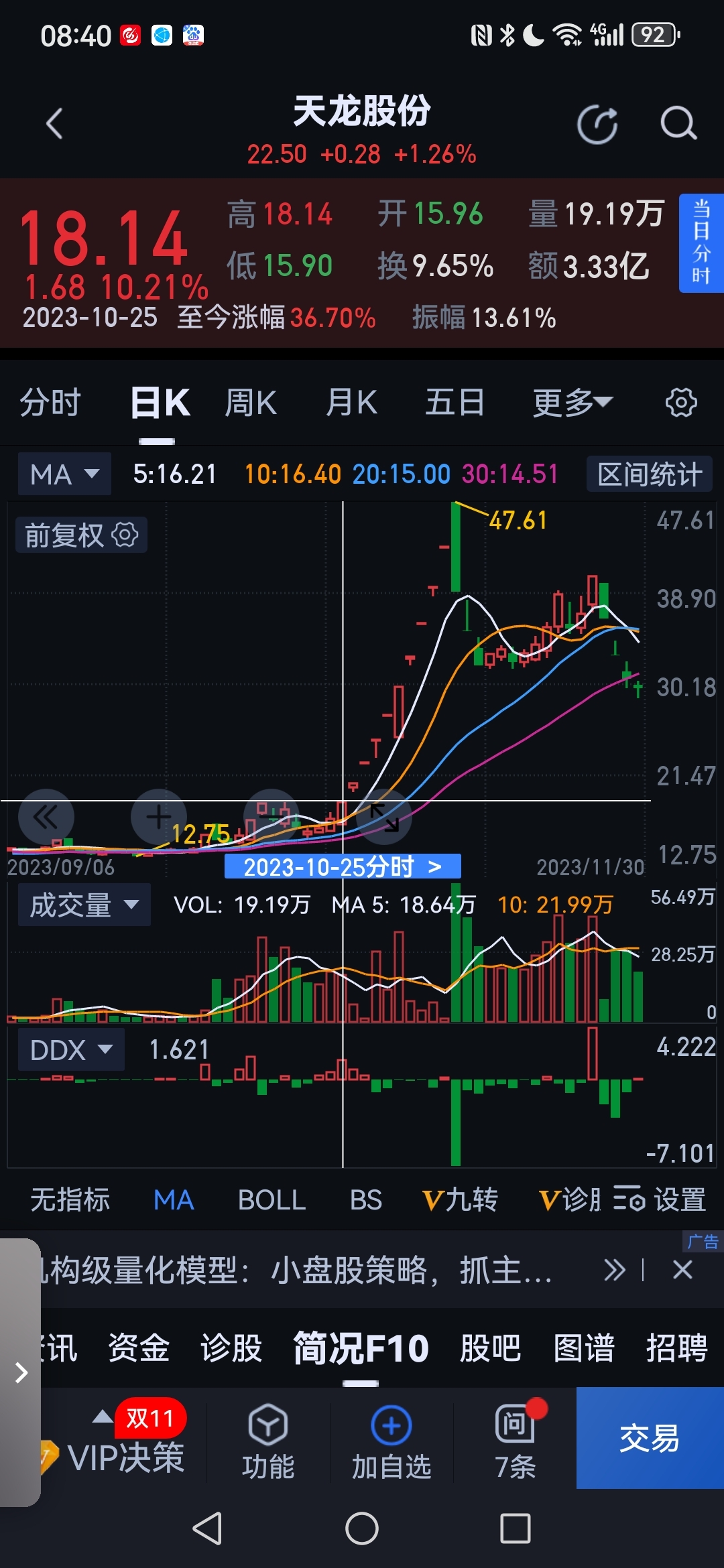 兄弟们!告诉你们一个秘密,2023年10月26日大牛股圣龙第一波见顶回落,但作为补涨龙天龙股份从25日开始迅速接捧连拉11个涨停板,其间圣龙始终处在调整之中。此次平潭发展走牛的逻辑大家心里很清楚,目前它的第一波尚未结束,而作为最有希望的补涨龙非漳州发展莫属,原因就不细说了。