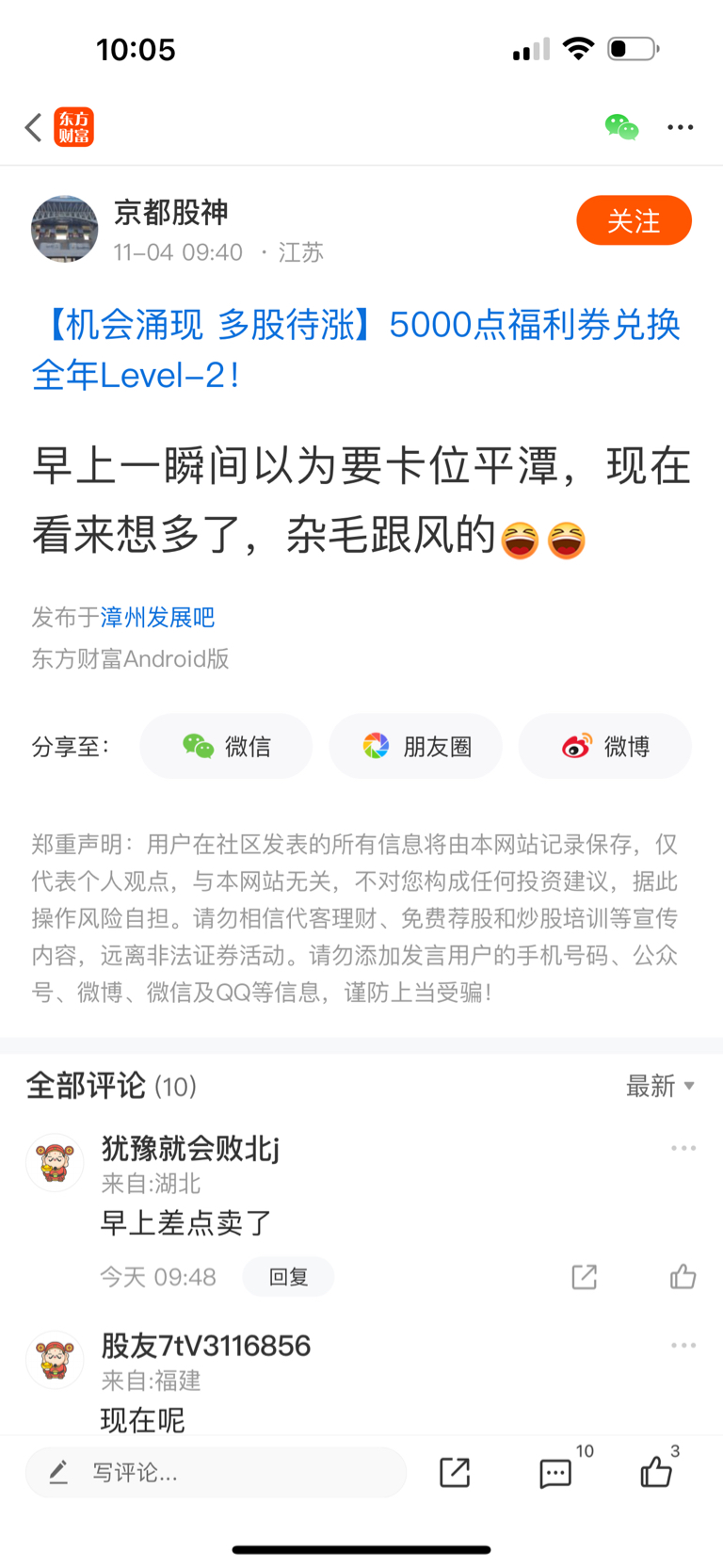 温馨提示: 1.根据《证券法》规定,禁止编造、传播虚假信息或者误导性信息,扰乱证券市场;2.用户在本社区发表的所有资料、言论等仅代表个人观点,与本网站立场无关,不对您构成任何投资建议。用户应基于自己的独立判断,自行决定证券投资并承担相应风险。《东方财富社区管理规定》