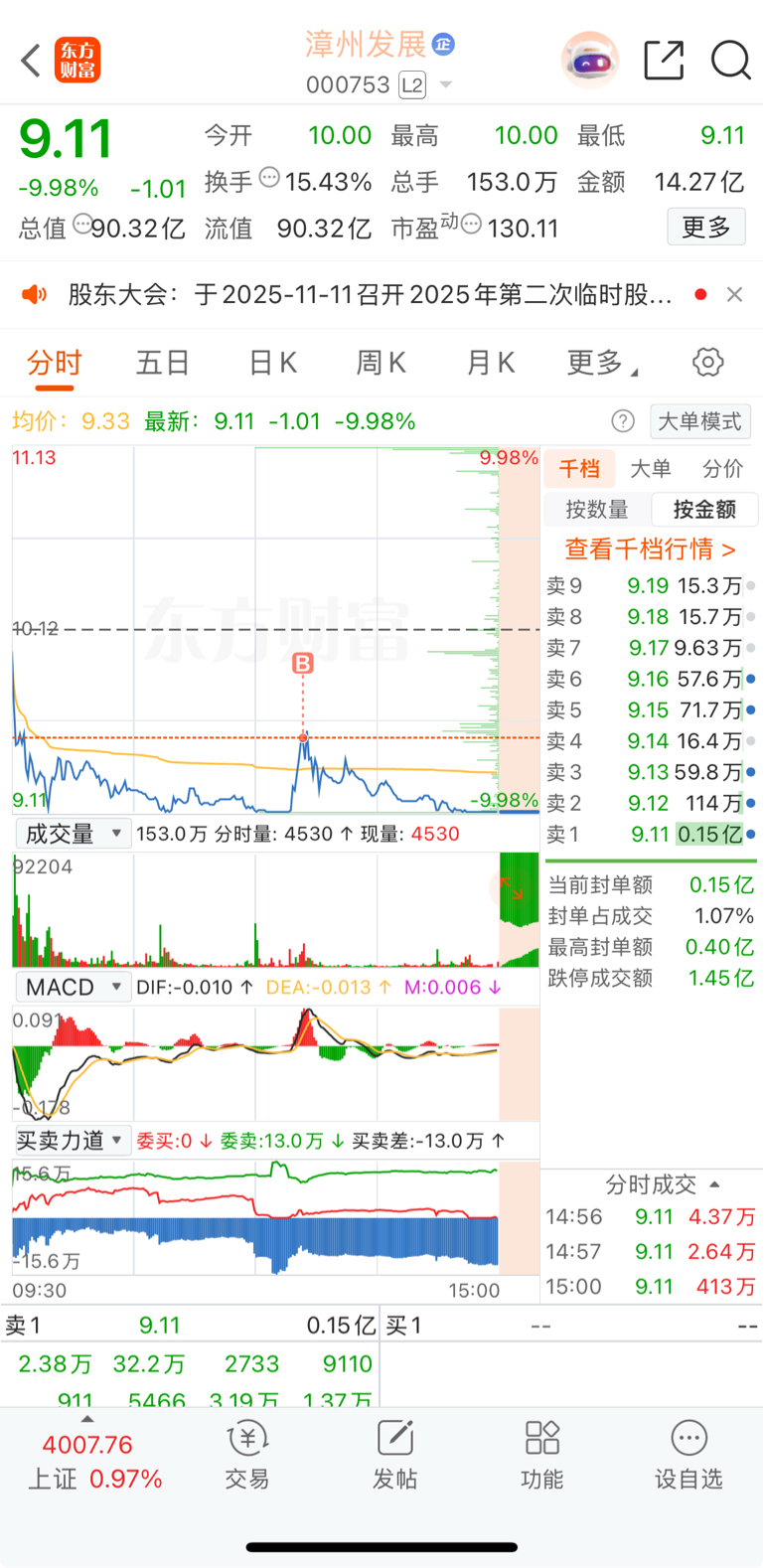 $漳州发展(SZ000753)$ 我本来来想给你们拉个地天板的、奈何抛压太大、我也套山峰了!