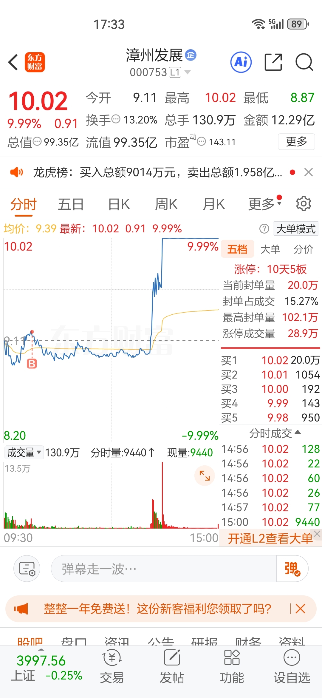 $漳州发展(SZ000753)$ 今天最成功的一笔操作,漳州直接干掉了平潭坐上了头把交椅。