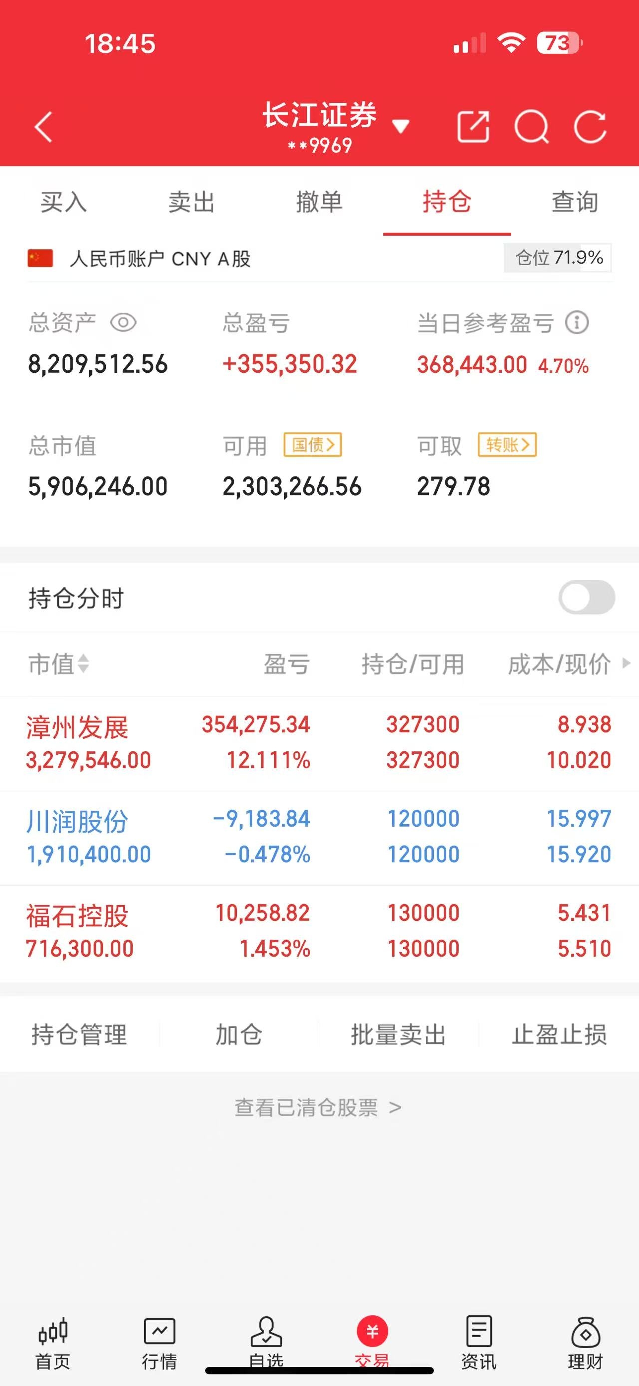 $漳州发展(SZ000753)$ 惊魂的2天昨天跌加了点仓,今天竟然涨停,微赚即可走人,留点仓底做个留念,万一还有便宜捡呢