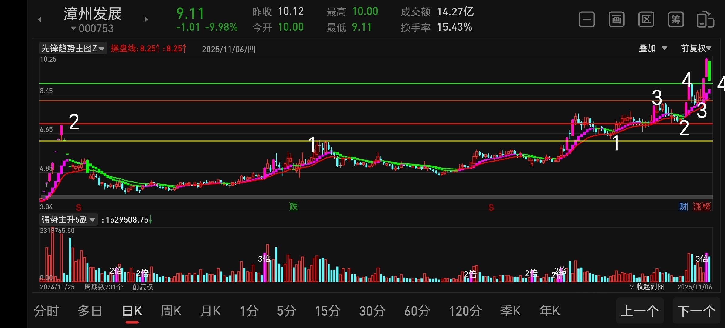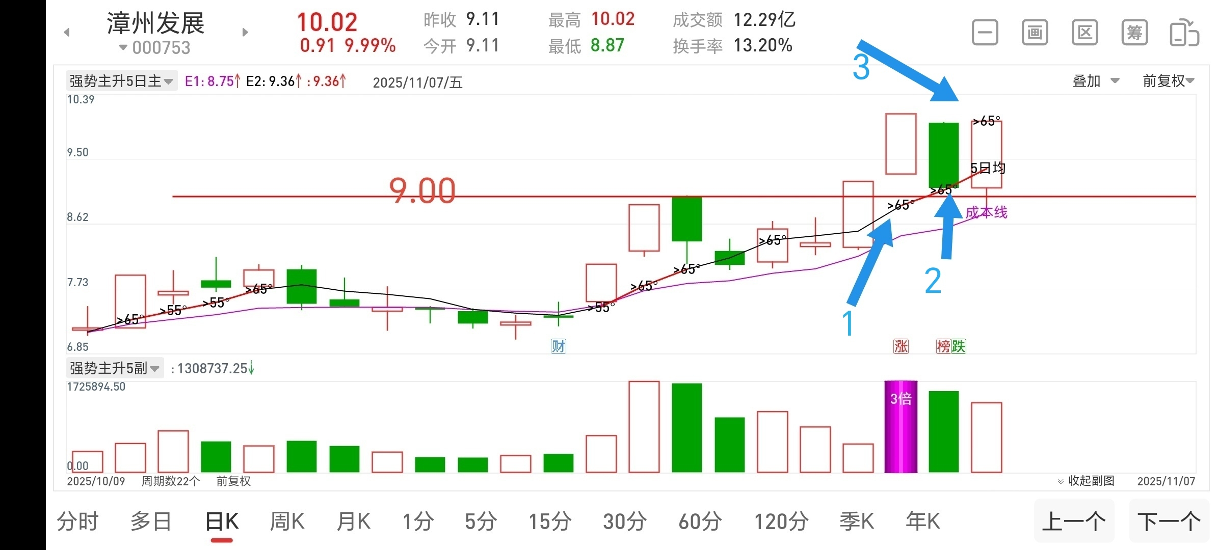 $漳州发展(SZ000753)$ 今日漳州走势完美,如昨日预判在9.00附近止跌企稳,形成4对应4,更为可喜的是今日继续打出第三个65度角,并且是以涨停的形式,堪称完美,可以确定主升行情以前开启,在车上的朋友拿好了,不破5日线,一路持有,吃他个干干净净!