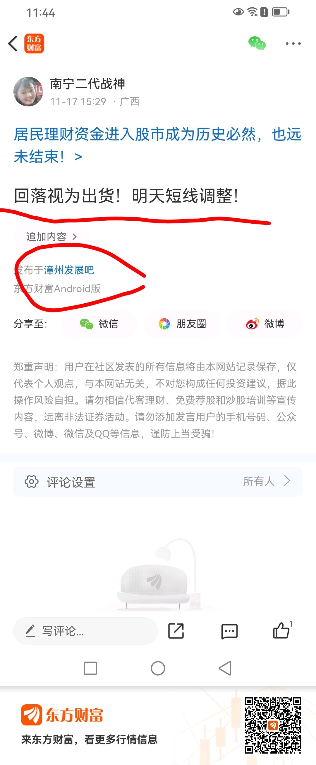 温馨提示: 1.根据《证券法》规定,禁止编造、传播虚假信息或者误导性信息,扰乱证券市场;2.用户在本社区发表的所有资料、言论等仅代表个人观点,与本网站立场无关,不对您构成任何投资建议。用户应基于自己的独立判断,自行决定证券投资并承担相应风险。《东方财富社区管理规定》