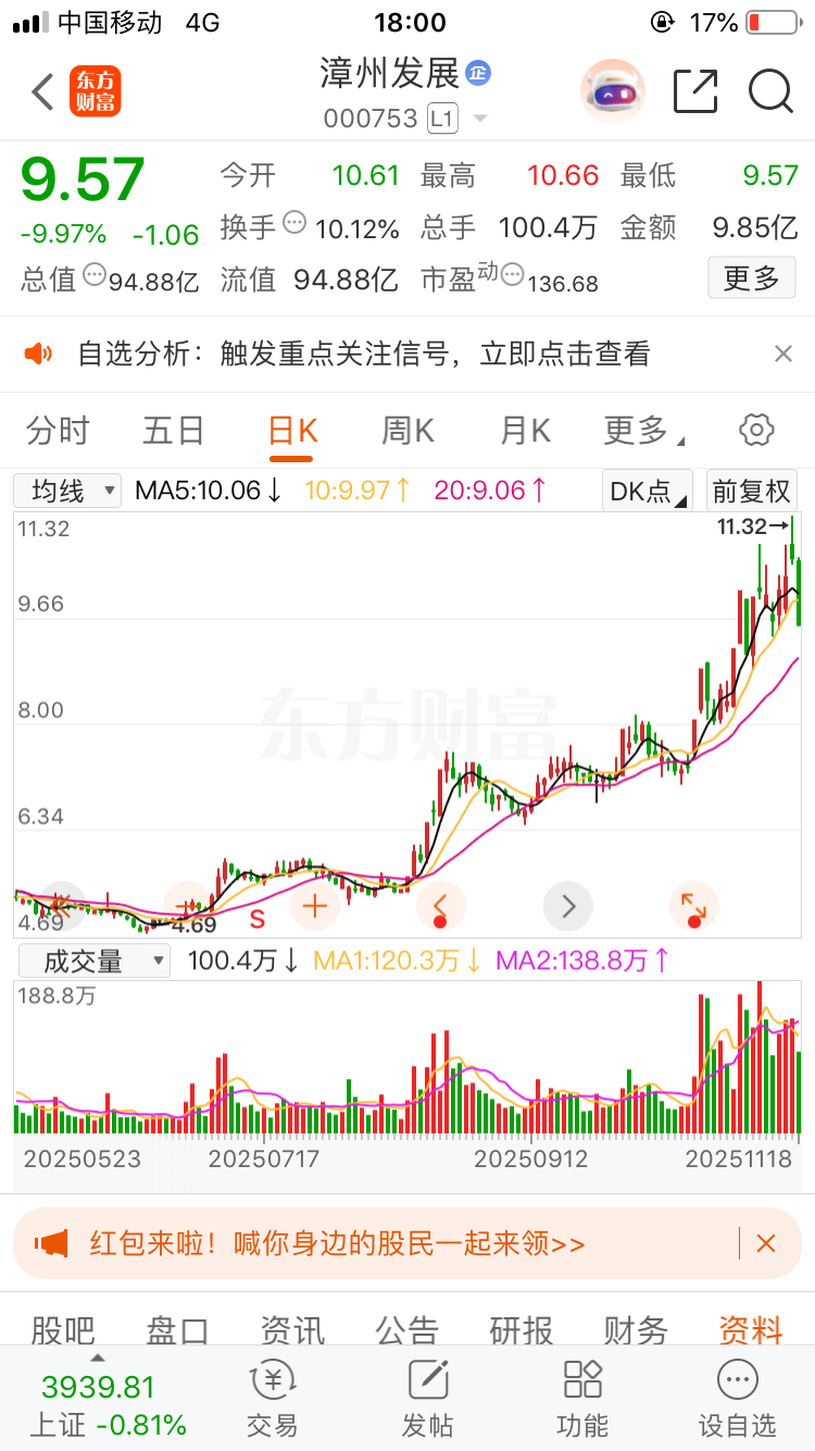 $漳州发展(SZ000753)$ 冠城新材与漳州发展,两者行业天差地别,但趋势却极度相近,一起上涨,今天双双跌停板,说明什么呢?有朋友说倒车接人,别想多了哈,它们上去是啥性质,下来就是啥本质,这些都是游资接力短炒的目标,快进快出,小主力与游资都吃得饱饱的,现在倒车接人上车,大家似细品吧。品不出味,老老实实去当接盘侠。
