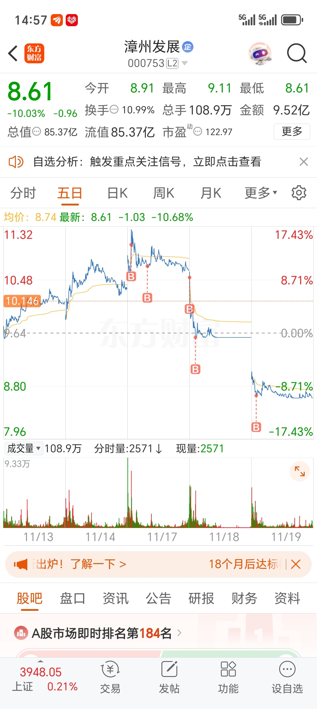 $漳州发展(SZ000753)$ 兄弟们在吗