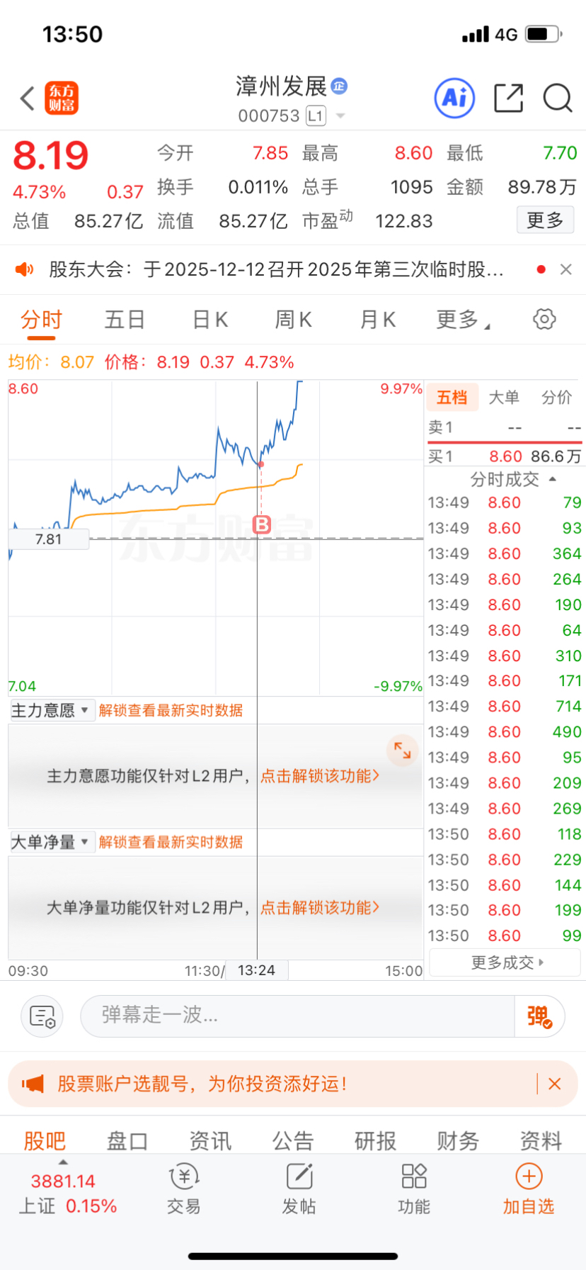 8.19值得博弈$漳州发展(SZ000753)$ #强势机会# #实盘记录# #投资干货# #投资随笔#