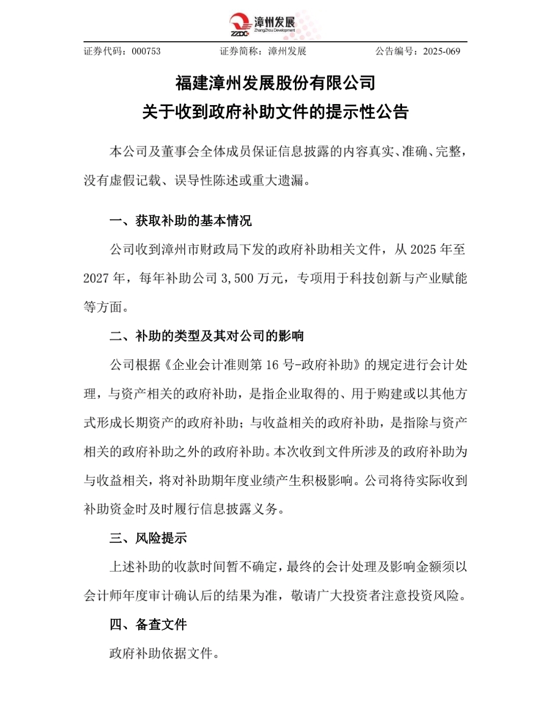 $漳州发展(SZ000753)$ 还有这等好事,这他么都可以拿长线了,指明了国家重点照顾发展对象呀!明天我把长线资金匀点过来!明天低开给个口子