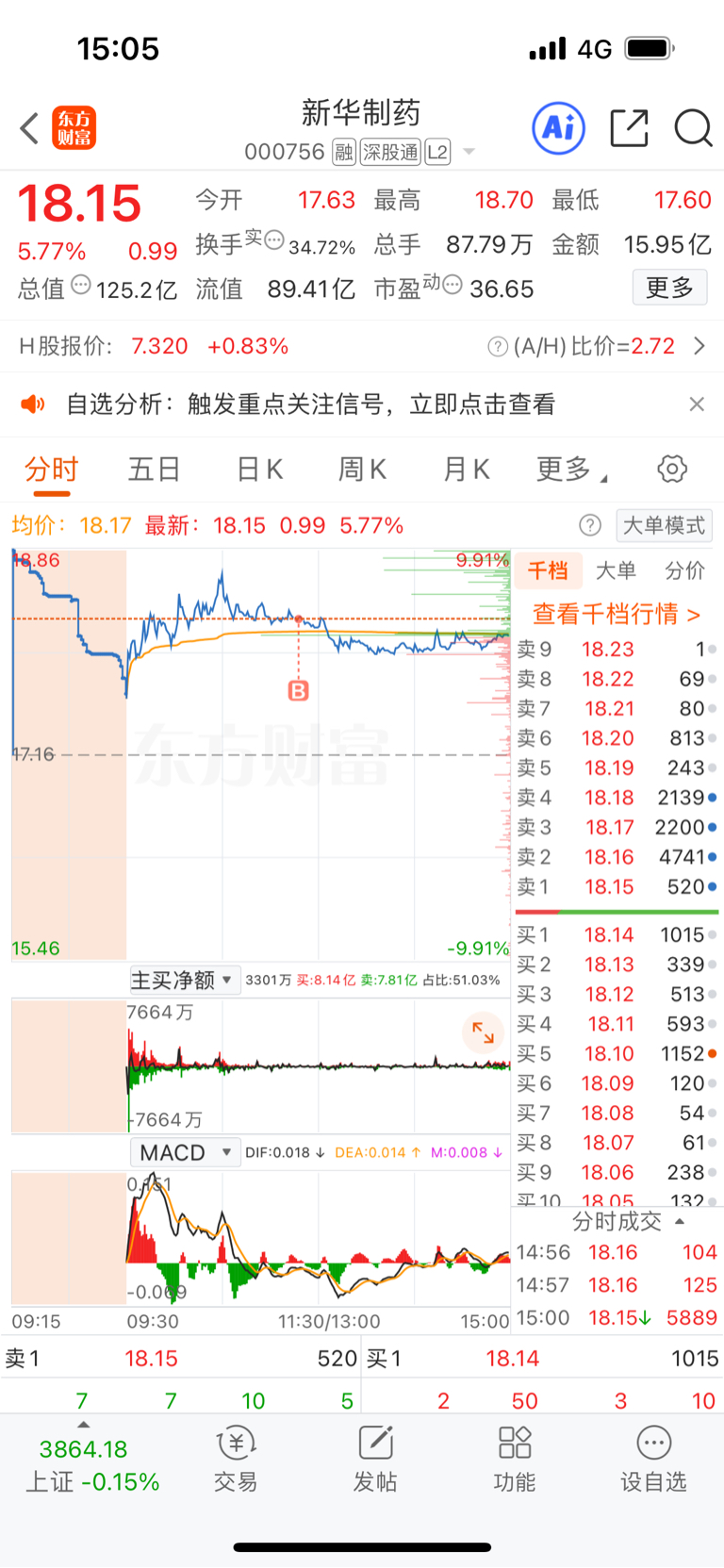 $新华制药(SZ000756)$ 又是要死不活的杂毛股,明天直接卖了,卖给你们这群喜欢玩杂毛的人