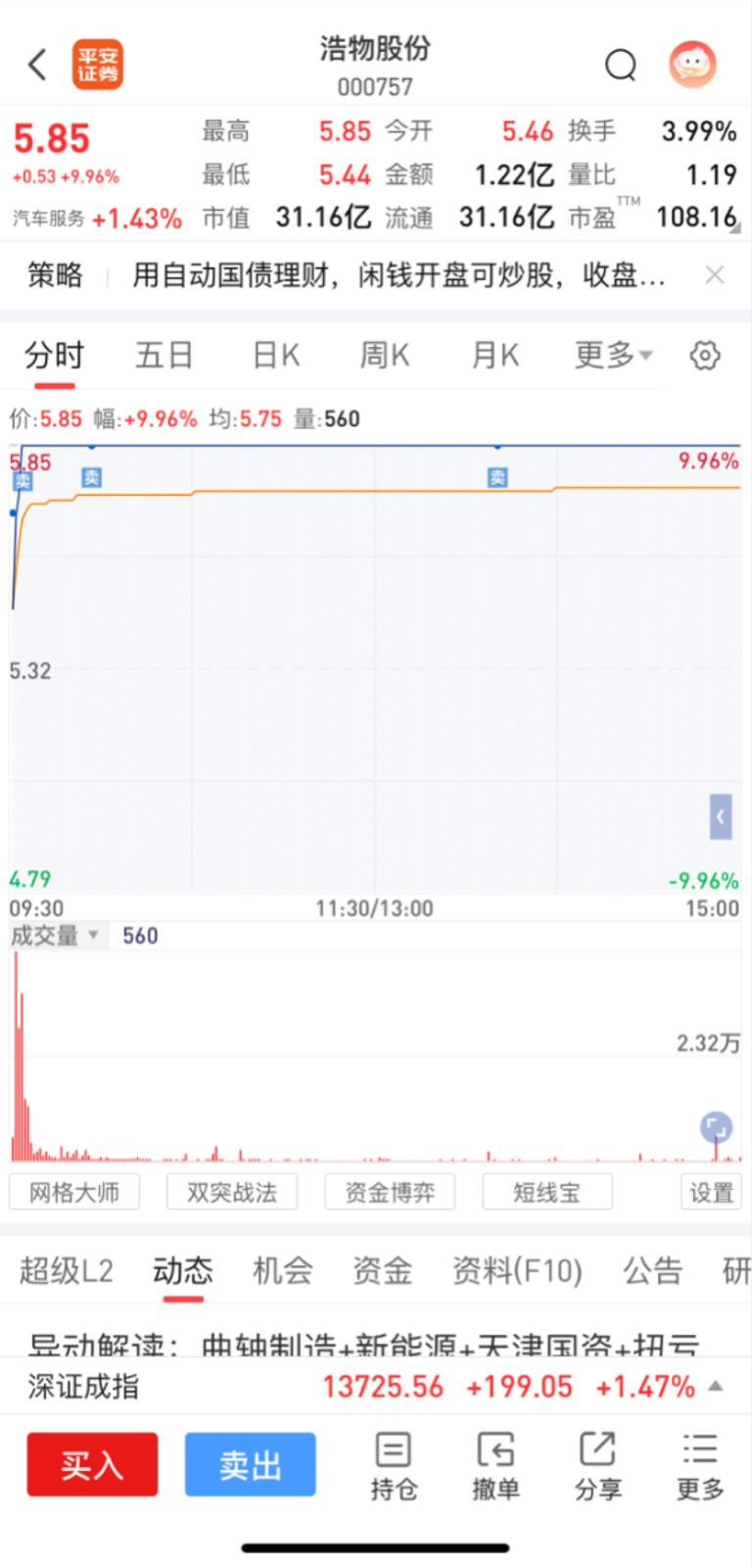 $浩物股份(SZ000757)$ 哪怕是涨停了怎么就找不到一个继续持有下去的理由呢?那就见好就收吧,放到口袋里的才是自己的。