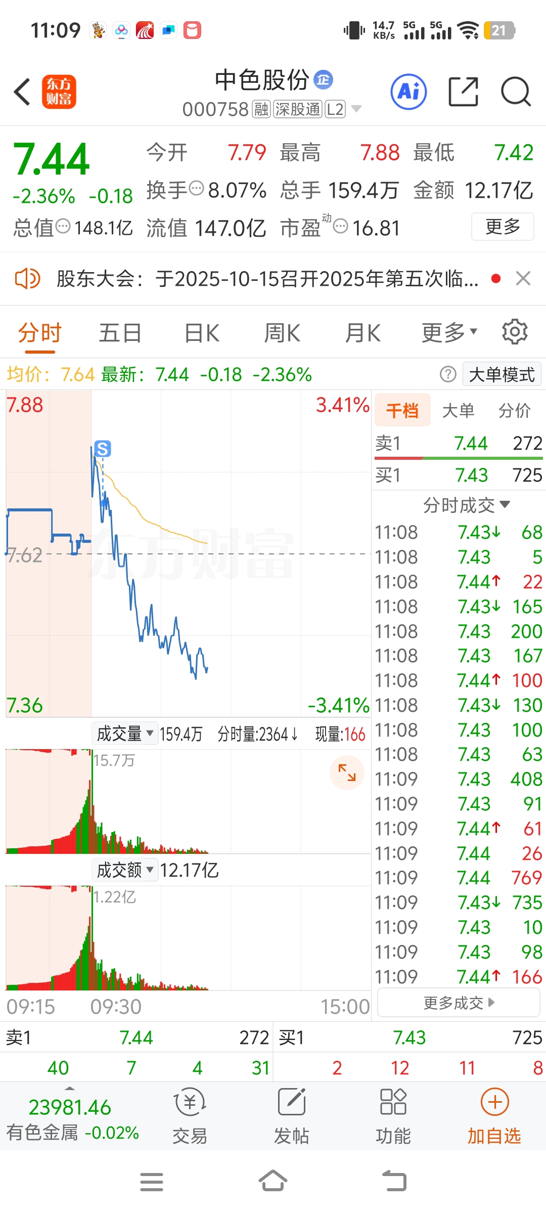 $中色股份(SZ000758)$ 出了13000股,感谢主力和市场