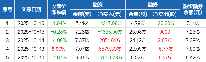 中色股份:融资净偿还1217.99万元,融资余额7.11亿元(10-16)
