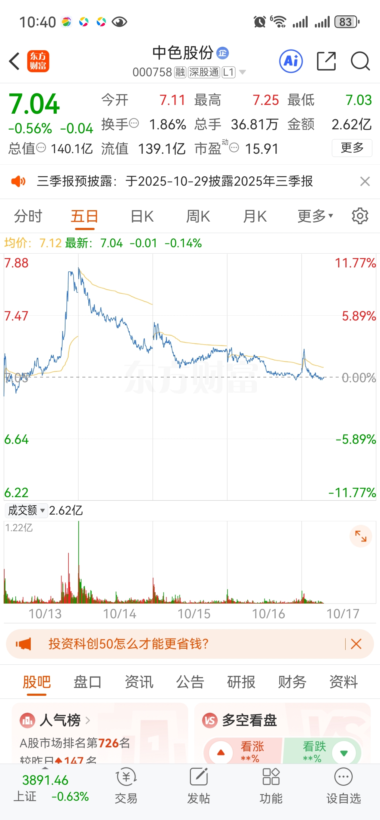 $中色股份(SZ000758)$ 从涨停板到-11%,只用了4天时间,资金套现离场,成交量持续破2万亿