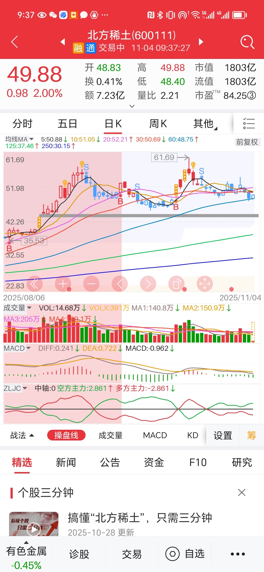 $中色股份(SZ000758)$ 北方稀土出利空,开始大涨