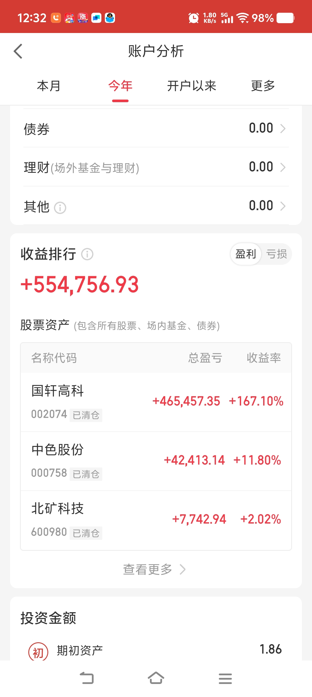$中色股份(SZ000758)$ 7元买进第二天7.8以上清仓然后后面再买6.66不成交然后6.74追上去说6.8附近清仓的就这样都成第二收益率高的股票了,有多放水够明显了么反正今年早就翻倍以上再年底赚十来个点凑数就行