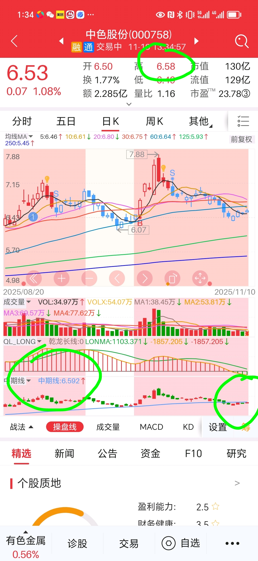 $中色股份(SZ000758)$ 中线平均价6.59,吓得中色瑟瑟发抖。