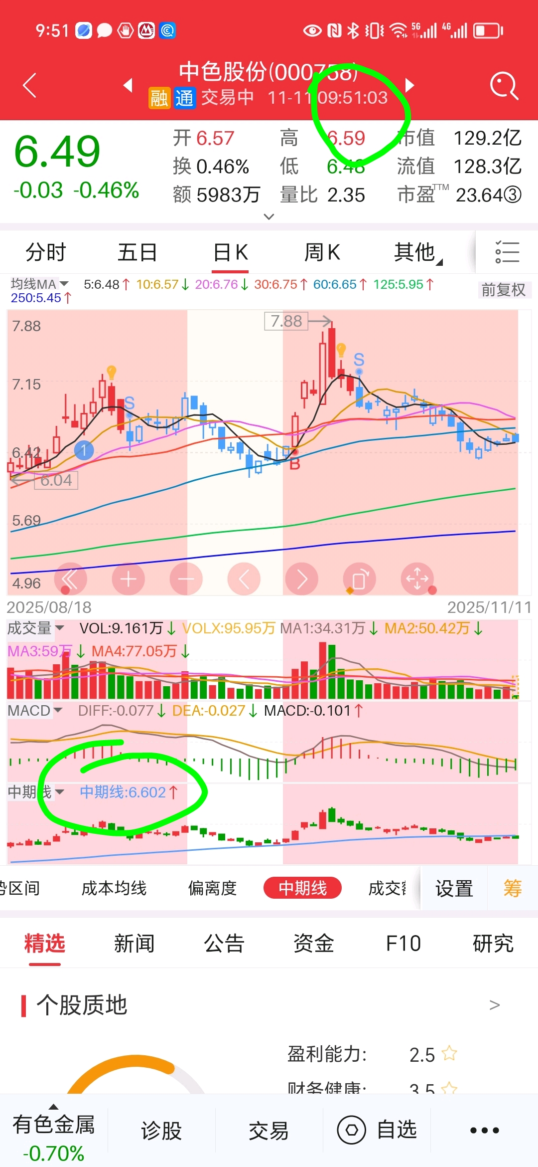 $中色股份(SZ000758)$ 中期线压力位是中色来说还是很吃力。昨天是6.59,中色摸了下6.58,今天是6.60,中色摸了下6.59。小心翼翼,碰到就掉下去,像被电一样。