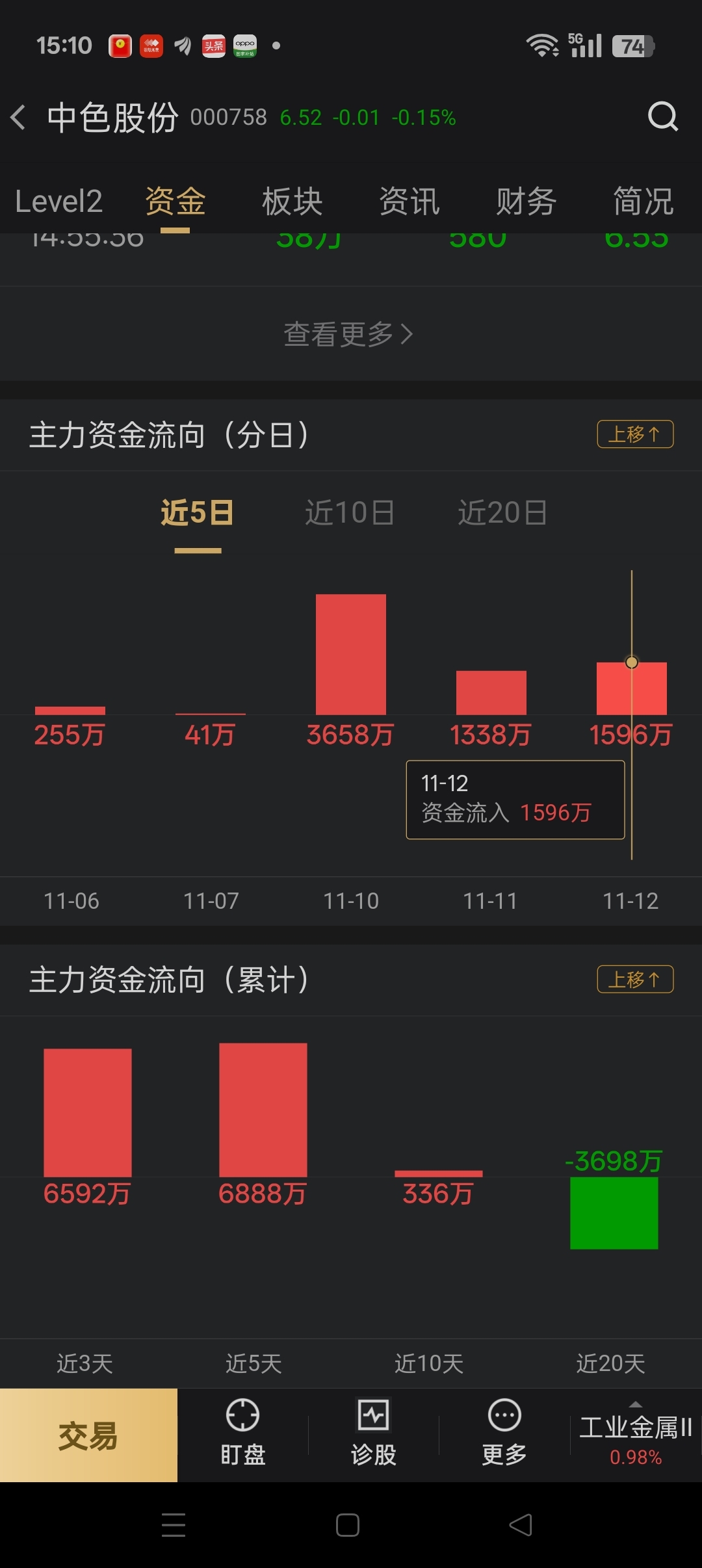 $中色股份(SZ000758)$ 近五日主力连续吸筹!