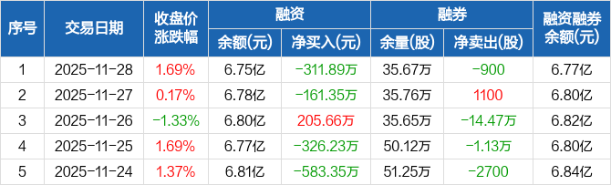 中色股份:融资净偿还311.89万元,融资余额6.75亿元(11-28)