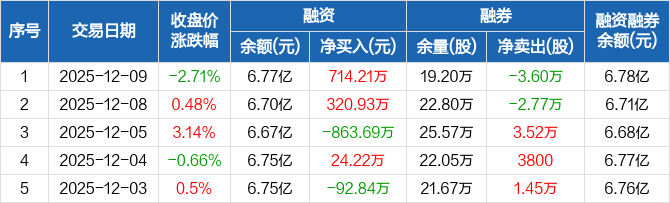 中色股份:融资净买入714.21万元,融资余额6.77亿元(12-09)