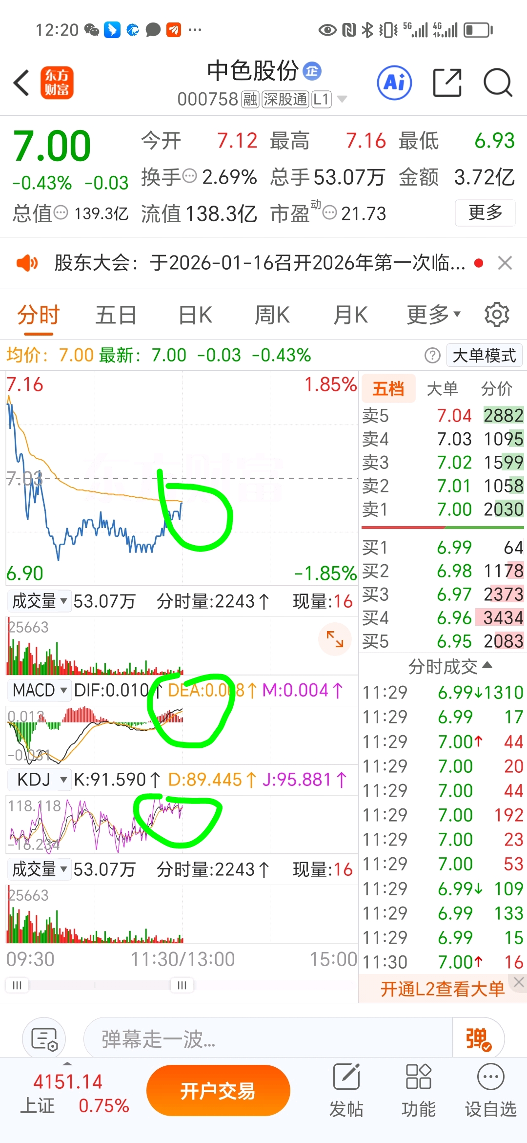 $中色股份(SZ000758)$ 现在的价格,下午开盘几分钟又会跌下去