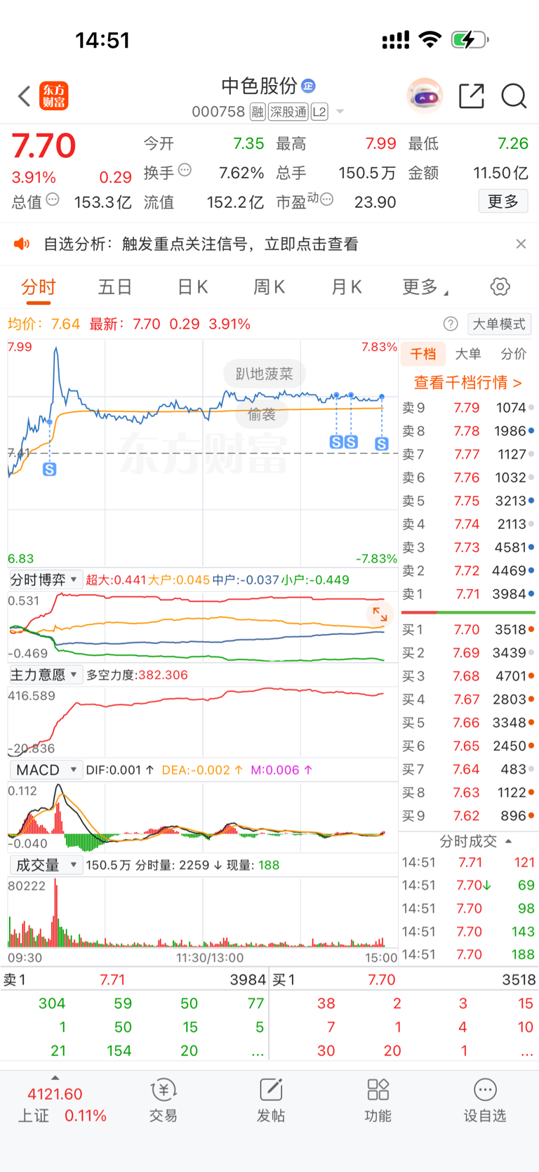 下车了车上兄弟们发财.明天中色涨停