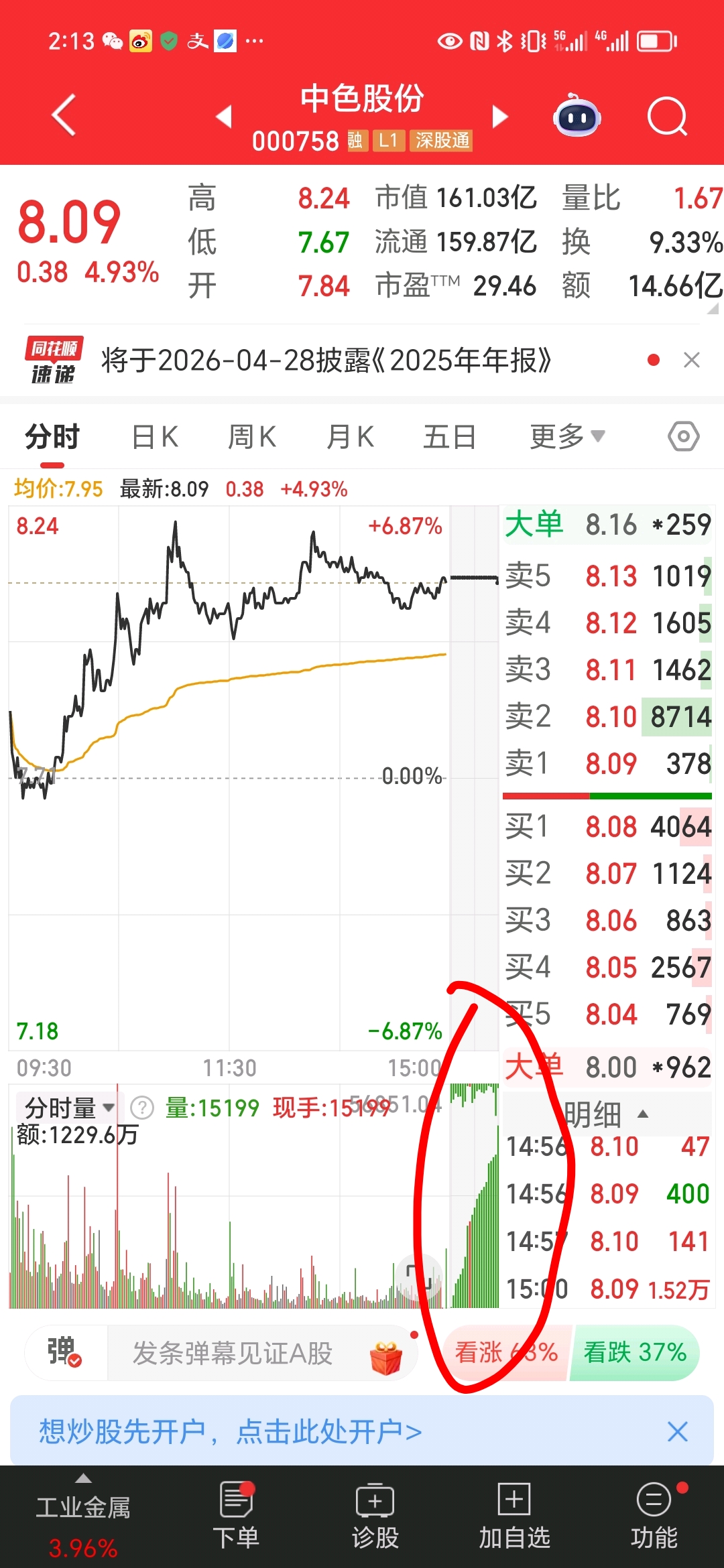 $中色股份(SZ000758)$ 同花顺这一片绿油油的啥意思?谁知道?其他股票这一部分红的多。