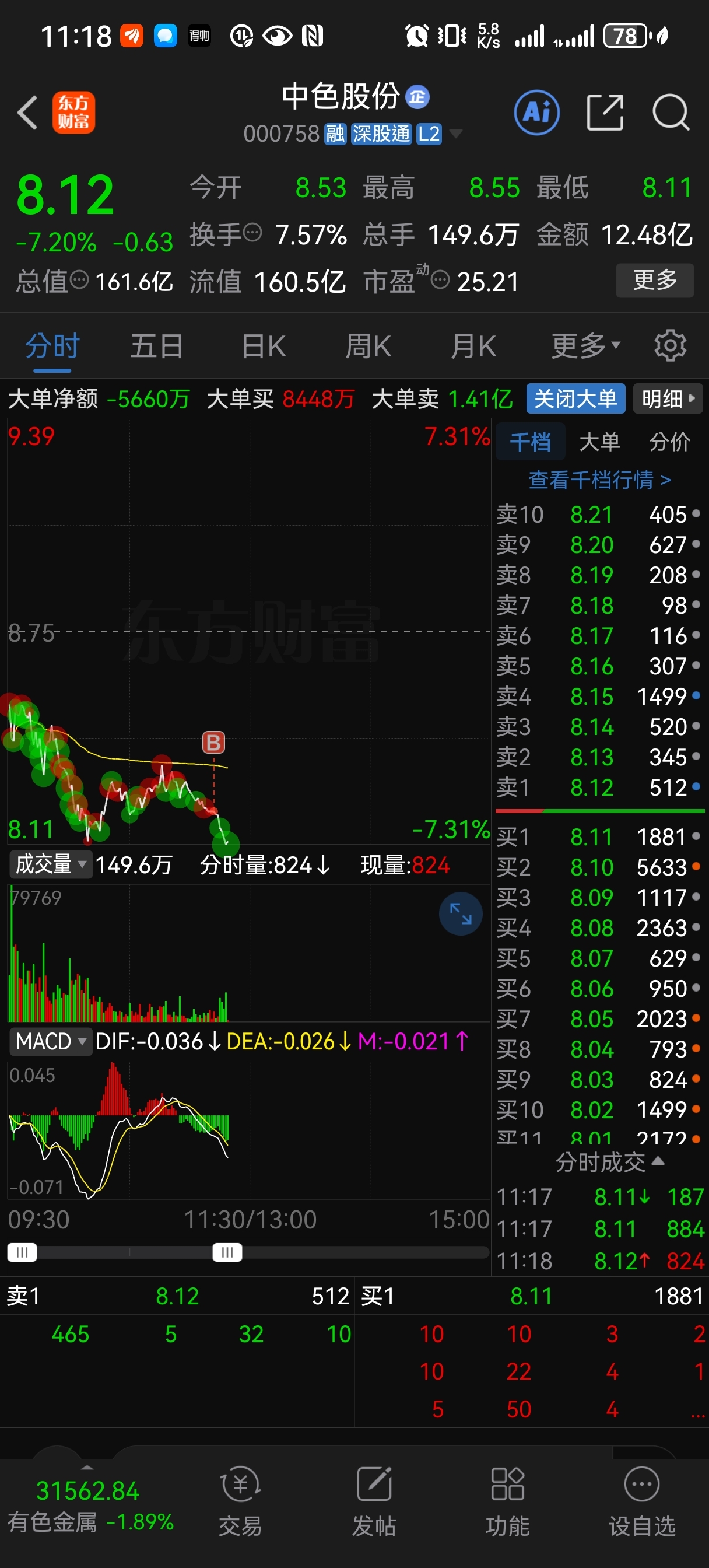 $中色股份(SZ000758)$ 被我买崩