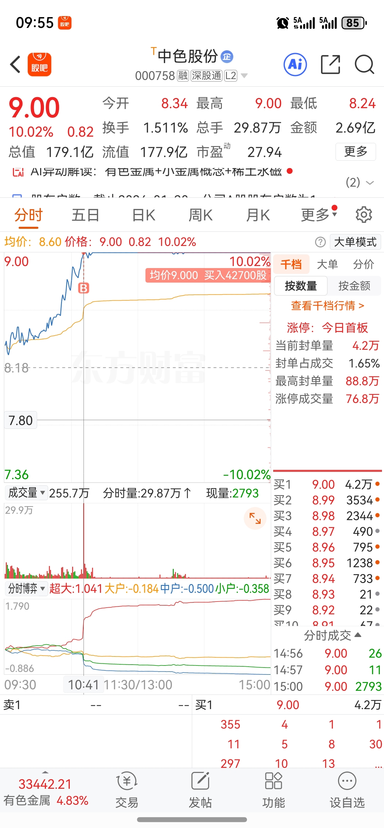 $中色股份(SZ000758)$ 量能还行,上板扫了一笔,拿个先手。