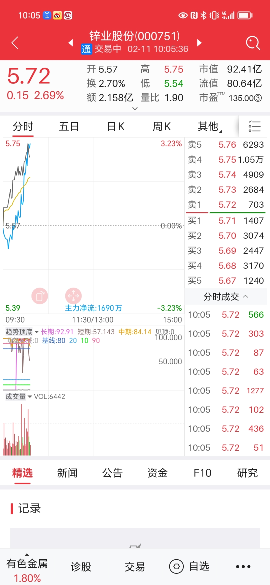 。有色金属最近十年走势,中色被一众小弟超越,许多小弟已经是它市值三倍以上。类似盛和资源今年利润增长百分之三四百,中色增长百分之三十四,还是卖了部分盛和资源股份达到的高度。一个工程股,混在有色板块里,品质也不厚道,每次行情结尾,补涨一天,休息几个月甚至几年。