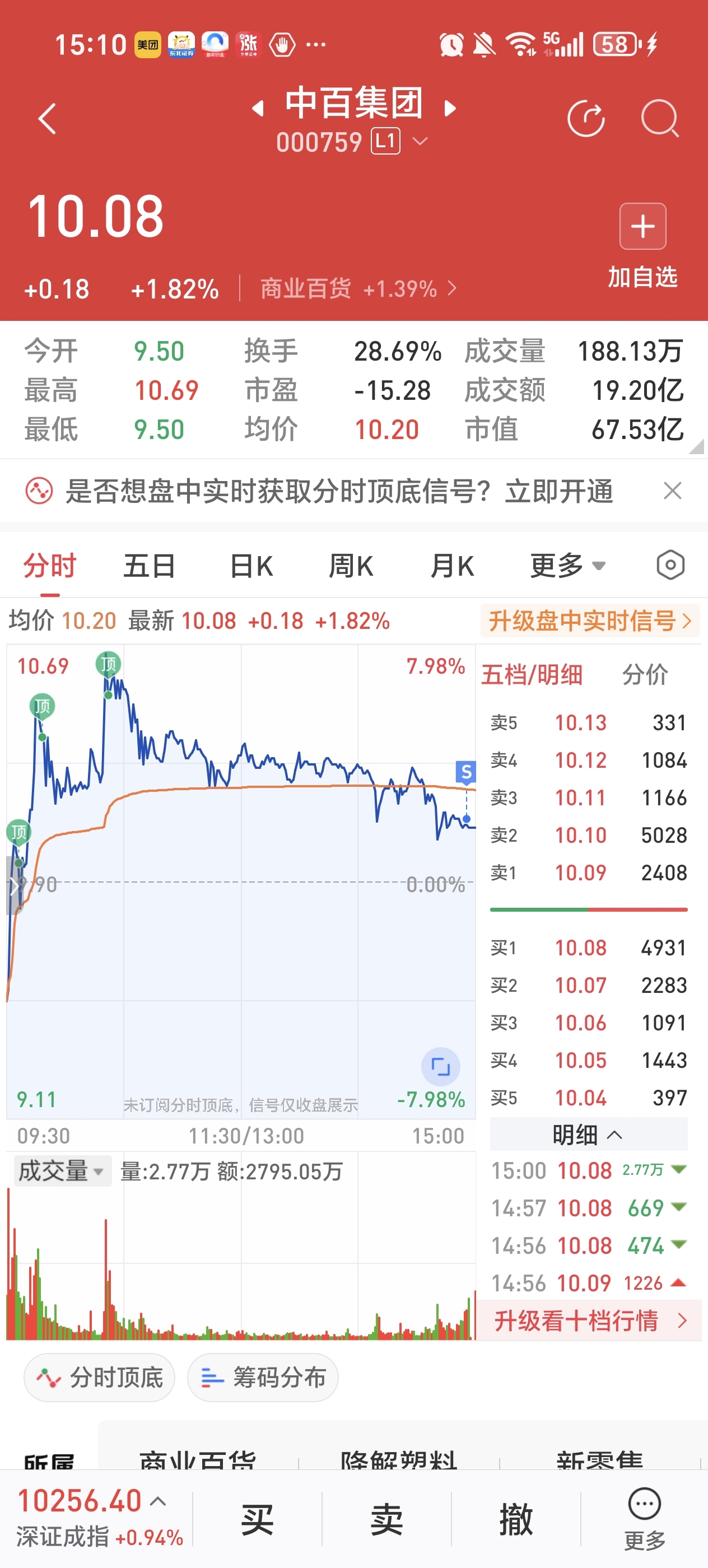 $中百集团(SZ000759)$ 格局了一天,尾盘割肉走了,明明早上回本了没走,下午亏麻了